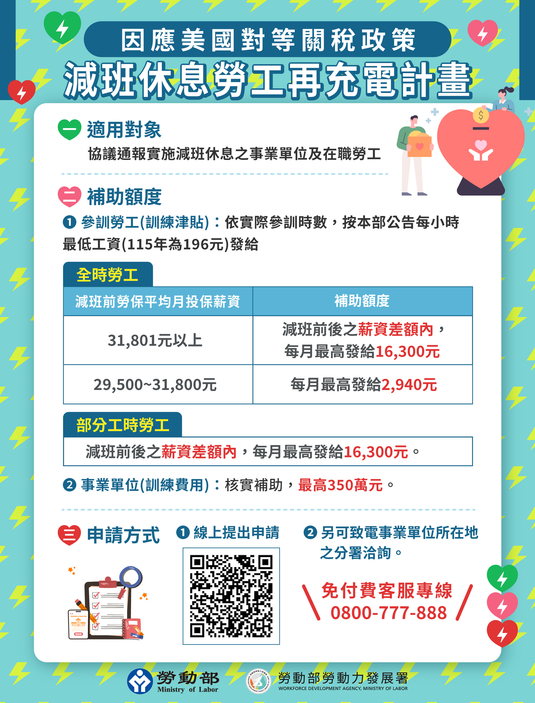 因應美國對等關稅政策支持減班休息勞工再充電計畫